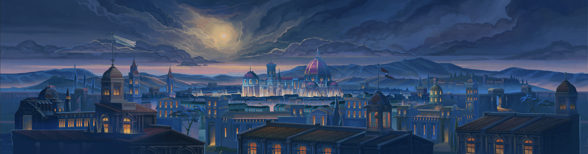 The system proved highly effective, iterative, and fast to render at scale, allowing us to compose environments and direct the narrative flow, whether dropping into Vinci, passing beneath the waves in Venice, or soaring through up into the skies of France, surrounded by his innumerable inventions.